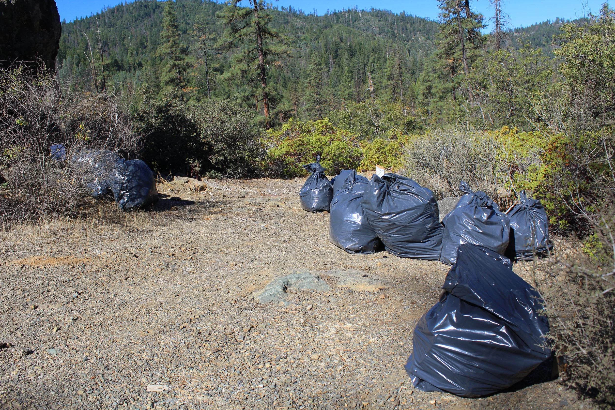 “These volunteer days took a ton of planning and coordination,” Emma Carlson, Cannabis Restoration Program Coordinator, explained. “We needed enough trucks, trailers, and staff to haul materials away. Contractor trash bags, trash grabbers, gloves, hand sanitizer, and hand washing stations were provided at each event. I made sure local transfer stations were expecting us, and anything that couldn’t be disposed of in Trinity County had to be hauled all the way down to Shasta County. We are extremely grateful to all of the volunteers who not only made these cleanups successful, but significantly multiplied and expedited our impact.”